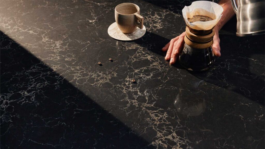 5100 Vanilla Noir: A rich and luxurious ebony base, washed with flowing veins of vanilla cream, exuding a bold personality.