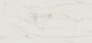 A pure white backdrop that boasts the prestigious look of marble, traversed by delicate veining in golden-brown that floats over its misty base with its translucent quality veiled by a shadowy effect, in a Honed finish