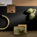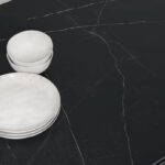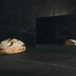 A dramatic black base, passionately animated by slivers of fine lines that strike like lightening across a stark midnight sky, in Honed finish. Combined with inverted slabs, a vivid juxtaposed motion gains even more power.