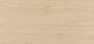 Fine layered bands in the lightest beige tones span across the entire surface, brought to life by white calcite accents and ochre flecks that emphasize a coarse granular complexion, creating an alluvial beauty with true depth and dimension.