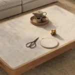 An earthy neutral base infused with taupe and beige veining, with feathery cream swirls that create fluidity and movement. Alluvial layers merge into the translucent background, creating a calm yet engaging visual texture.