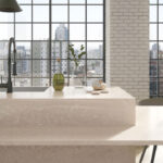 A powerfully accentuated space, inherently combining the worlds of industrial, Nordic, and modern designs to produce an uncoventional area further accenturated by the unexpected colour of the statement stone island.