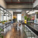 This eclectic space, showcasing a mix of materials, colours, and elements from different inspirations, is the perfect setting for a solid black stone that balances everything into a complete whole.